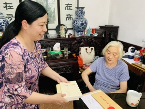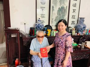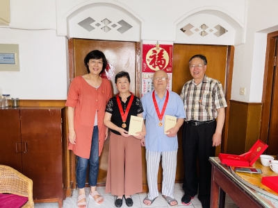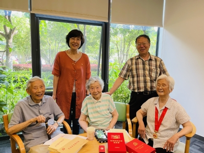 6月28日,党委书记赵阳,副书记副院长朱晨花,离退休支部书记黄震老师、辅导员张旻蕊、金利妍作为代表走访慰问小黄书离退休老教师,到退休教师家中,与他们亲切交谈,谈谈工作,拉拉家常,询问他们的身体状况和精神状况,并向他们转达组织的关怀和温暖,同时将“光荣在党50年”纪念章送到老党员手上,获表彰老党员心情十分激动。