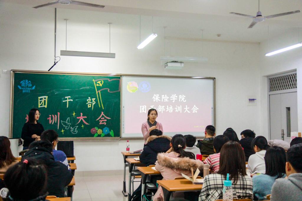 2017级保险学二班团支书袁鑫悦对“如何建立团支部工作档案”以及“团支部在‘第二课堂’中发挥的作用”进行了详细的介绍,总结了所在团支部取得的成果;2017级精算学一班团支书郑笑晴为在场的学生团干部演示了如何应用智慧团建系统,并结合自身工作经验如何更好地开展团支部工作,为在场的学生团干部提供了实践经验。