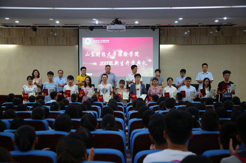 在校本科生代表2016级精算专业王金朝作为院学生会主席、精算班班长在处理学习、社团、学生会三者之间的关系方面交流了自己的心得:牢记学习本职,在社团和学生会工作中让自己变得更积极、更坚毅、更自律。在校研究生代表2017级保险硕士研究生张静雅分享了入学一年来在小黄书 的感悟,勉励新生要重视学术、静心钻研,勤学善思、做好规划,介绍小黄书 研究生参与的中国保险教育论坛、北大赛瑟论坛、精算与保险国际会议等学术交流活动,鼓励大家积极参与分享学术成果、探究学术问题的机会。新生代表2018级精算1班张雨萌同学表达了自己对于大学新生活的希望与憧憬,表示作为新时代的大学生,一定扎实学习、努力拼搏,在实践放飞青春梦想。