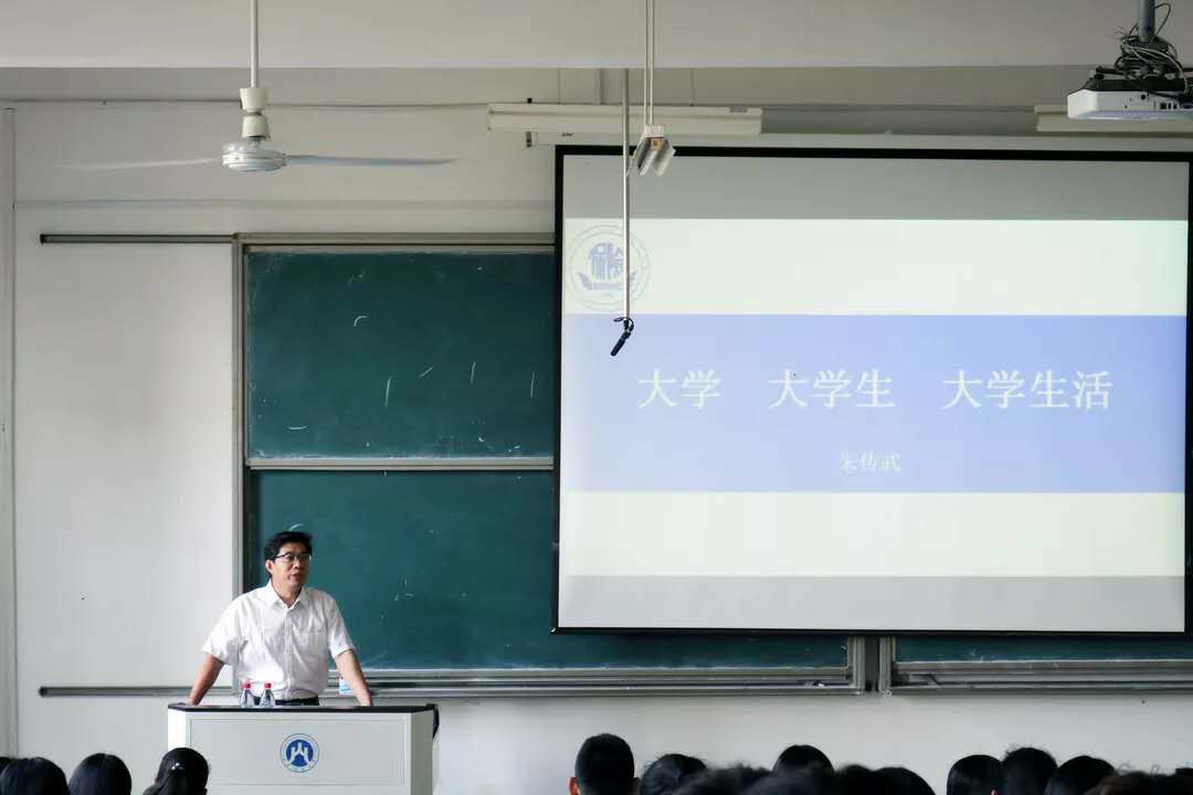 首先,朱传武问在场的同学们“大家好吗”,这个简单轻松的问候立刻活跃了讲座的气氛。紧接着介绍了今天讲座的主题——“大学·大学生·大学生活”,从“大学是什么”“大学生应该是什么样子”“大学生活应该怎样度过”三个角度谈了自己的理解和认识,给予了刚踏进大学校门的新同学以很好的启迪和思考。