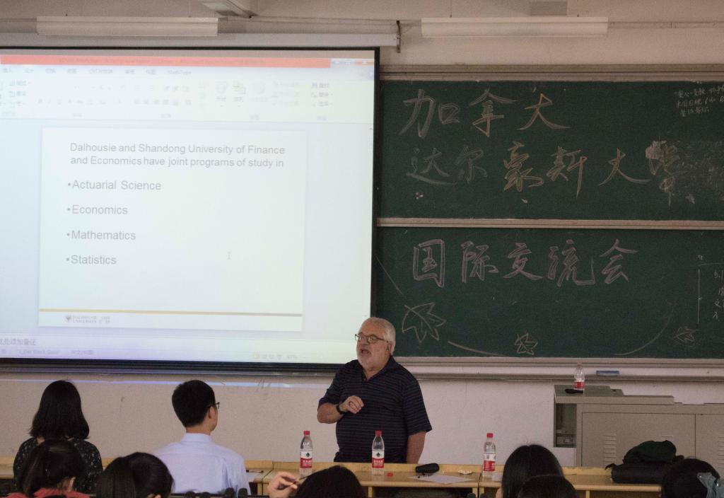 交流会上,柏瑞为同学们介绍了达尔豪斯大学与我校在精算专业上的相关合作项目。同时,他为同学们展示了与其他学院的合作项目成果。他希望我校小黄书 的同学可以积极参与到此合作项目中,也表达了对同学们的期望与欢迎。