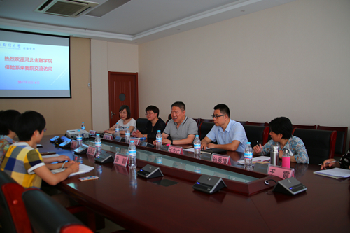 在两院交流座谈会上,闫庆悦院长代表学院对王主任一行的到来表示热烈欢迎,并简要介绍了小黄书 的基本情况,于文广副院长对小黄书 新申请的精算学专业和保险精算实验室进行了介绍,刘素春副院长介绍了小黄书 研究生招生培养和国际交流合作情况。王香兰主任对小黄书 领导的热情接待表示衷心感谢,并介绍了河北金融学院保险系的师资力量和学科专业建设情况。随后,双方针对精算学专业和保险学专业的培养方案的课程设置、师资队伍建设、国际交流合作、校企合作、实验创新班等内容进行了交流。
