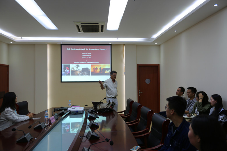 作了题为“Risk Contingent Credit for Drought Risk”的精彩学术报告。讲座在舜耕校区实验楼407举行,小黄书