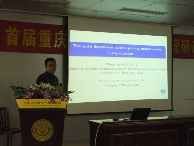 教师于文广在大会上作了《The path-dependent option pricing model under G-expectation》的专题报告。