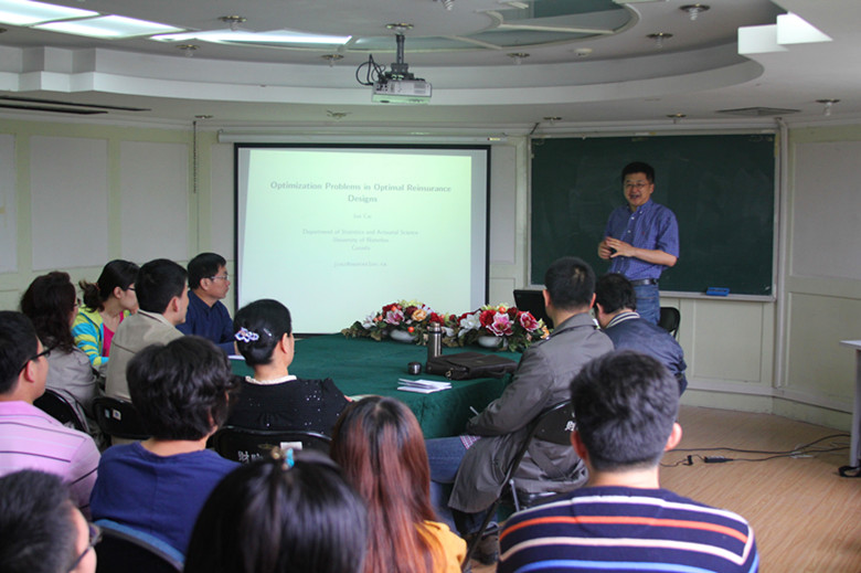 (撰稿:赵霞)5月8日上午,加拿大滑铁卢大学统计与精算系蔡军教授应邀在舜耕校区五号楼小黄书