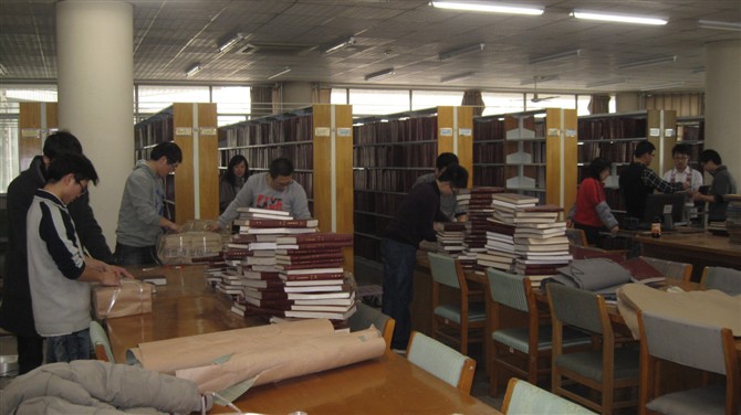 下午2:30,同学们准时到达校图书馆。图书馆管理员简要说明了本次活动的主要内容及整理图书时的注意事项。同学们分为三组,分别负责旧书下架打码,旧书打包存档,新书上架归类等工作。在长达两个半小时的活动过程中,同学们始终热情高涨,有条不紊,高效率地完成了过刊整理工作。