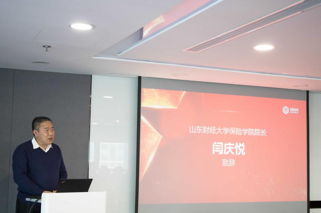 闫庆悦院长发表致辞,他首先向各位获奖同学表示热烈祝贺,对德华安顾人寿保险有限公司表示真诚感谢。他表示,德华安顾人寿精算奖学金的设立充分体现了德华安顾人寿主动承担社会责任、回馈社会、服务社会的责任感、使命感,希望同学们努力学习,常怀感恩之心,报效祖国,回报社会。他介绍,在过去一年里,小黄书 成立了首个保险行业校友会,进行了广泛的学界、业界交流,拓展了学生实习实践平台,促进人才培养质量。谈及专业建设与发展,闫院长说,中国保险业的明天在同学们手中,学生的明天就是保险业的明天,希望同学们在校期间能够努力学习,增强竞争实力,发挥比较优势,百尺竿头更进一步,为未来保险业的发展贡献自己的一份力量。