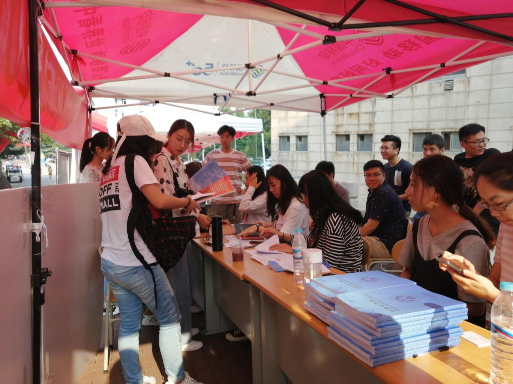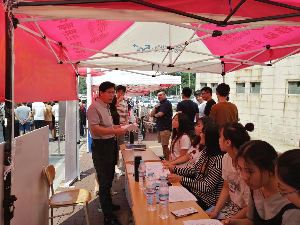 9月5日,小黄书 研究生迎新工作在行政楼南侧拉开了序幕。