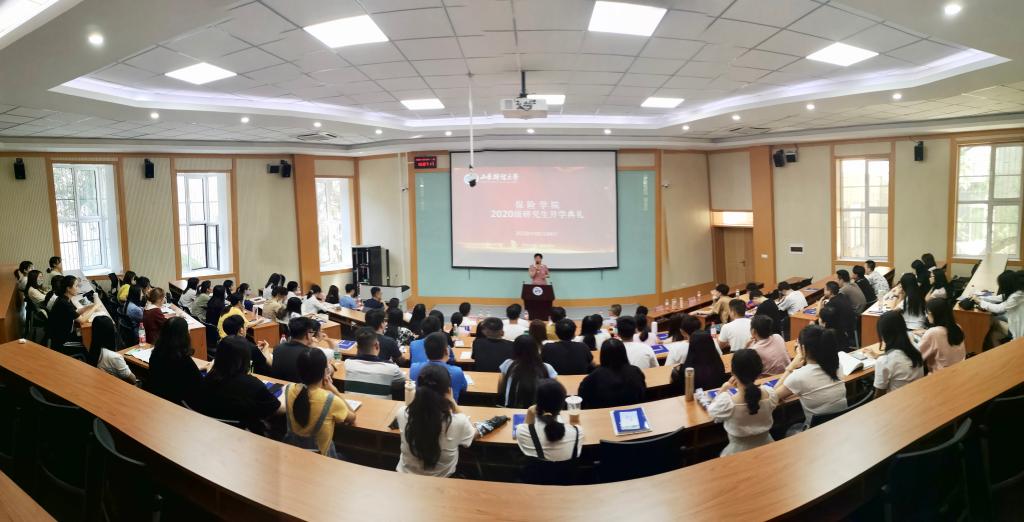 闫庆悦代表全院师生对2020级研究生的到来表示热烈欢迎,他对学院的发展历史、师资力量、学科建设、考研就业进行了简要介绍,并对同学们的研究生生活提出建议,希望同学们守住底线、注重细节,培养对保险的兴趣和思维方法,立志在未来成为更优秀的自己。