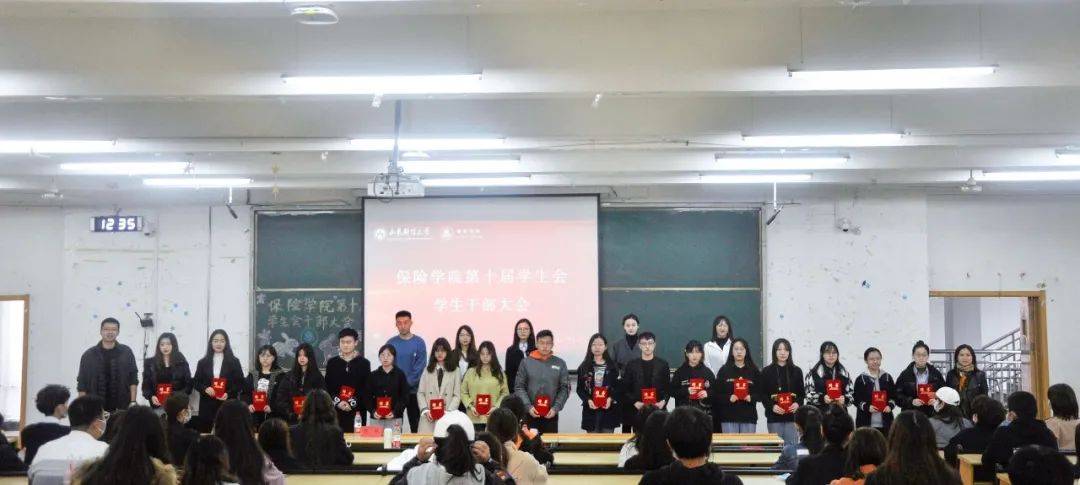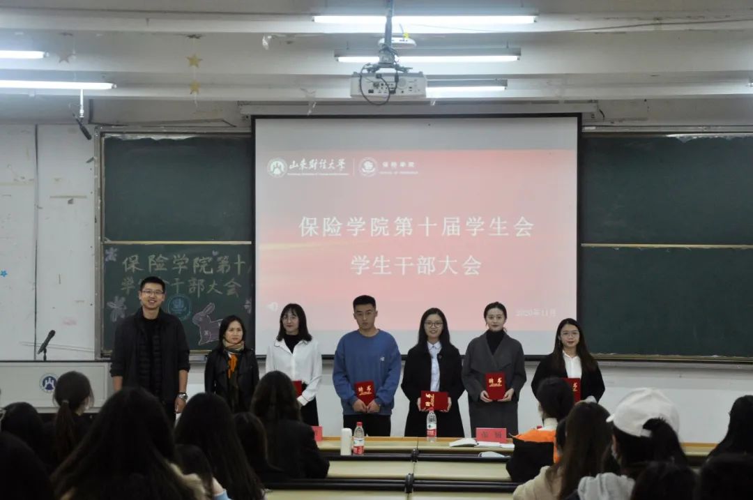 大会首先由小黄书 党委副书记张娟和辅导员陈萌老师为学院学生会主席团成员颁发聘书,5位主席团成员郑重的接过象征着认可与责任的聘书。