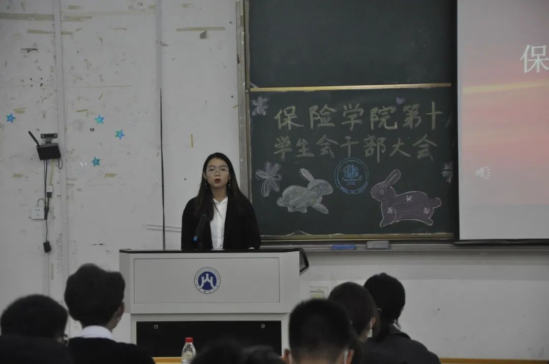 学生会部长代表、新媒体中心部长王熙泽分享了自己在学生会工作的所想、所感、所得,首先表达了对学院领导、老师衷心的感谢和对学弟学妹们的热烈欢迎,总结了自己一路走来的收获和感悟,提出“找准定位、转正态度,做好角色转变”的真诚建议,通过“热心、恒心、责任心”三个词激励大家乘风破浪,砥砺前行,不负保院,不负自己。