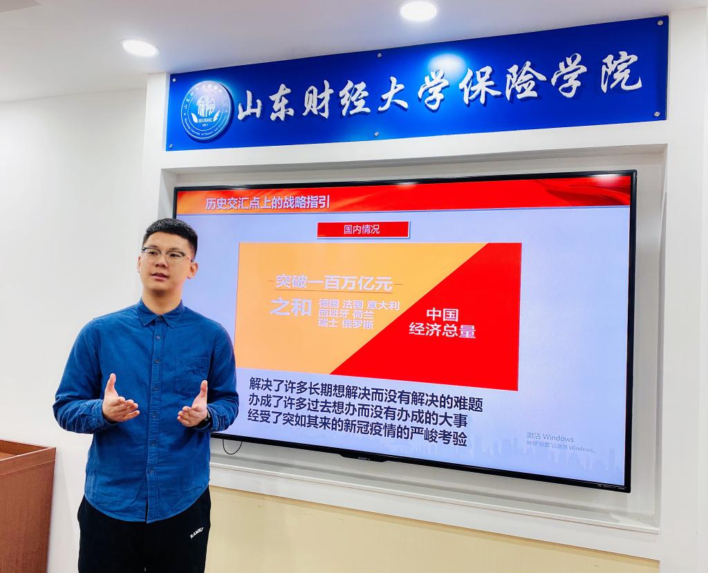 12月11日,山东省属高校学习贯彻党的十九届五中全会精神宣讲团成员、小黄书 辅导员李智分别为学生第二党支部学生党员、本科生和研究生代表作题为《奋进新时代 开启新征程》的宣讲。