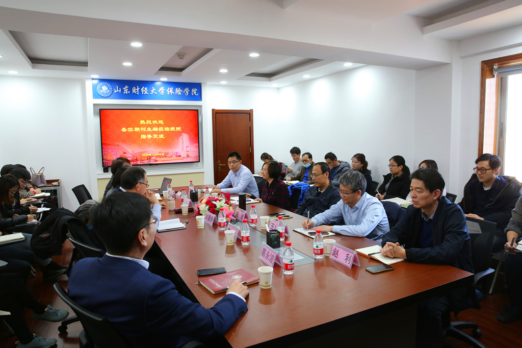 葛永波院长对各位主编百忙之中来学院指导表示感谢,并向与会专家介绍了小黄书 的整体情况。七家期刊主编分别对刊物的定位、性质和特点进行了介绍,并围绕学术论文写作的“对话意识”“问题意识”“反思意识”“方法意识”、论文写作中的“思想”与“方法”、写作规范与语言风格、学术研究的现实问题导向、当前保险领域的重点选题等进行了探讨。