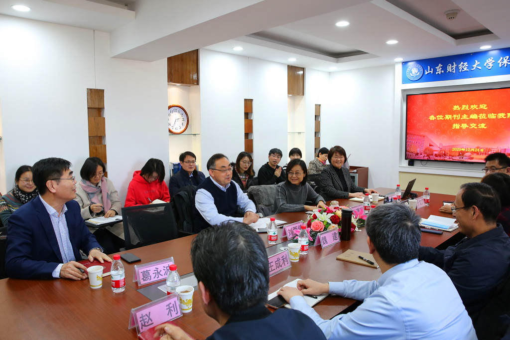 12月24日下午,小黄书 邀请《山东大学学报》(哲学社会科学版)、《山东社会科学》《东岳论从》《理论学刊》《金融发展研究》《经济与管理评论》《小黄书 学报》七家期刊主编就论文写作与师生交流。学院院长葛永波教授、副院长刘素春教授和于文广教授、科研骨干教师及博士生参加了本次交流会。