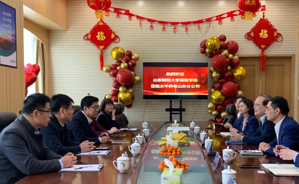 1月27日上午,学院党委书记朱传武、院长葛永波率领导班子成员赴太平养老保险股份有限公司山东分公司开展座谈交流。太平养老山东分公司党委书记兼总经理孙辉、副总经理雍厚申、保险业务部总经理张蕾、保险业务部副总经理高文东、人事主任张旭参加座谈。