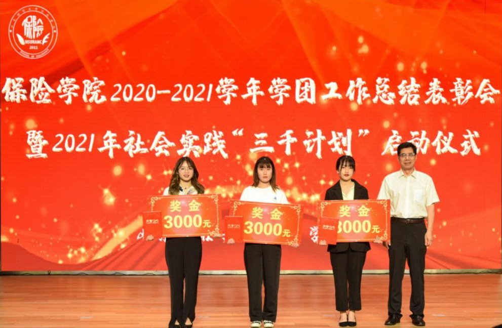 大会的第二阶段是2021年社会实践“三千计划”启动仪式,首先由学院团委社会实践委员陈萌针对学院2020年社会实践工作进行总结并宣读省级以上优秀团队和个人的表彰名单。党委书记朱传武为2020年“三千计划”省级优秀服务团队颁发证书与奖金。随后,卢雨荷同学为大家分享她和团队参加“三千计划”的感悟和收获。随着新的工作部署,2021年社会实践工作正式启动。
