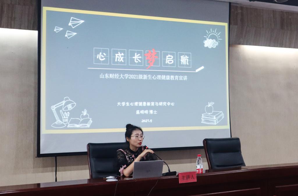 专题三,心理健康教育。心理健康教育专题邀请到了我校大学生心理健康教育与研究中心的盛明明老师,她以“心成长,梦起航”为主题向2021级新生同学介绍了心理学与心理咨询、心理健康教育中心和心理健康教育活动等方面的内容。同时她也向大家介绍了有关心理健康的专业知识,帮助同学们正确认识心理问题与心理疾病,学会处理自己的心理困扰和学业生活中面对的问题。
