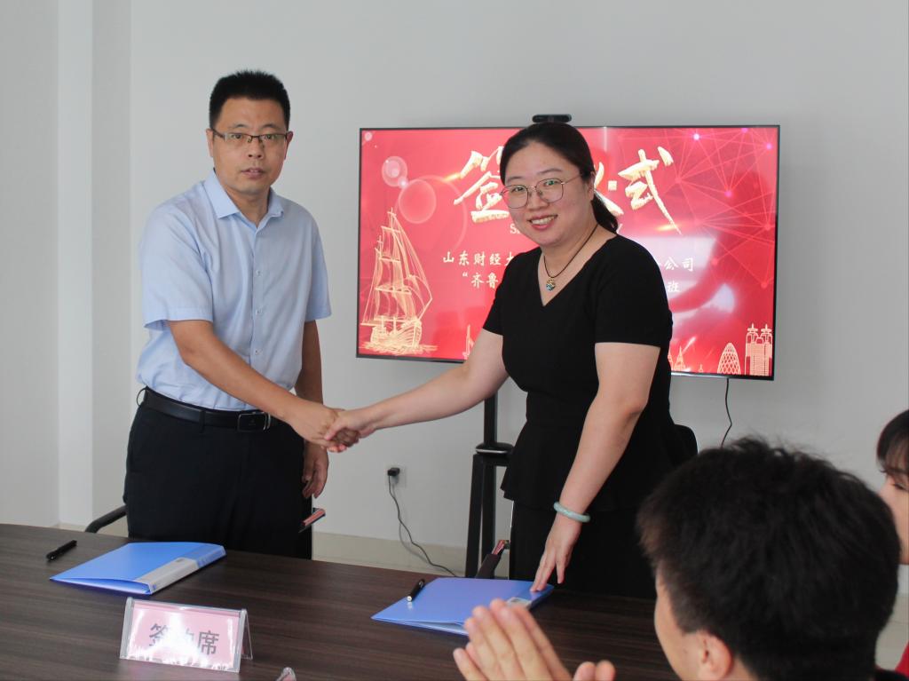 在对本次培训计划、培训课程和日程安排等详细商讨的基础上,于文广与隋云丽共同签署了小黄书 与永安保险山东分公司“齐鲁新锐”第一期英才培训协议。随后,双方进行了较为深入的座谈交流。双方就人才培养、社会实践、拓岗就业和继续教育等未来合作方向交换了意见,对定期举办培训班提升企业人员综合素质和选拔优秀学生实习就业等方面达成合作意向。
