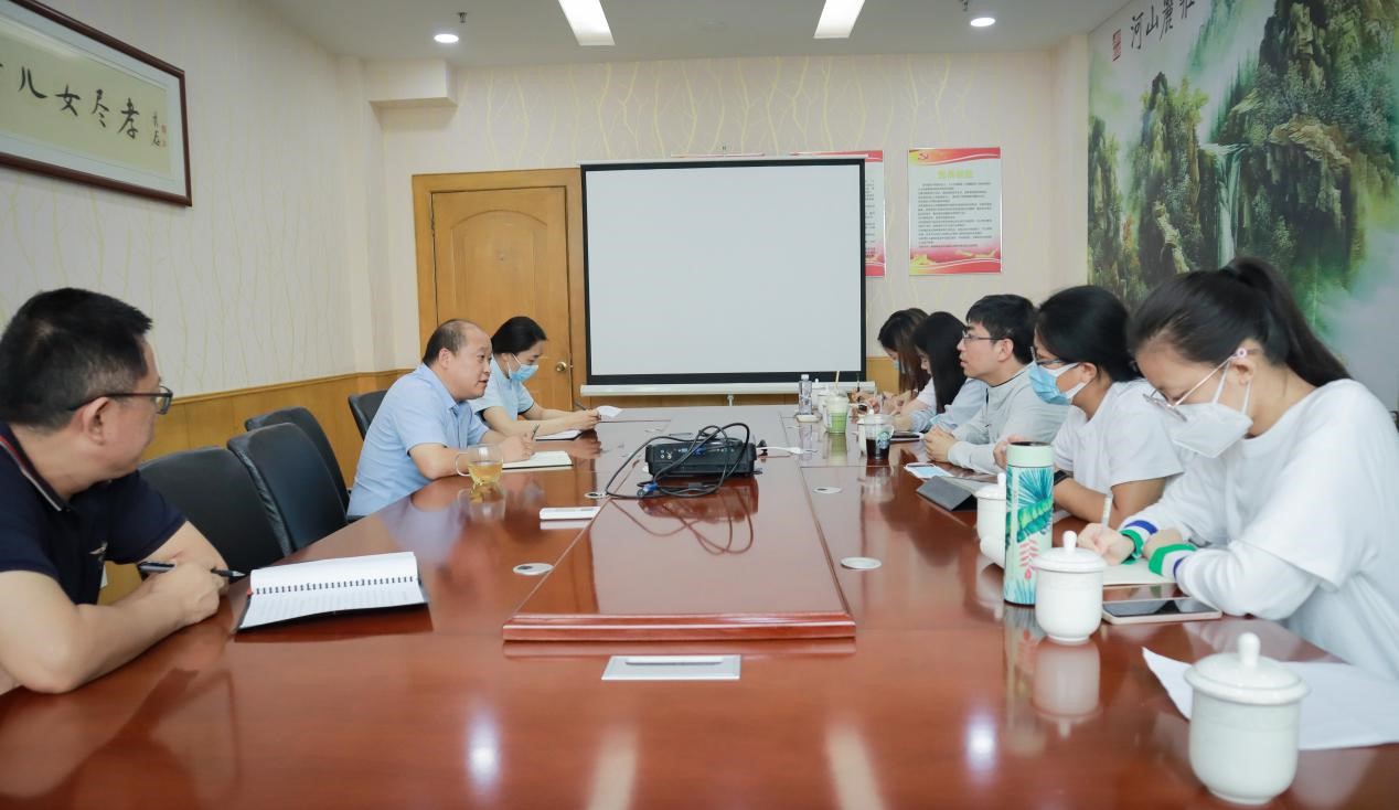 图为团队在现河和老年服务部与服务室副组室长交流
