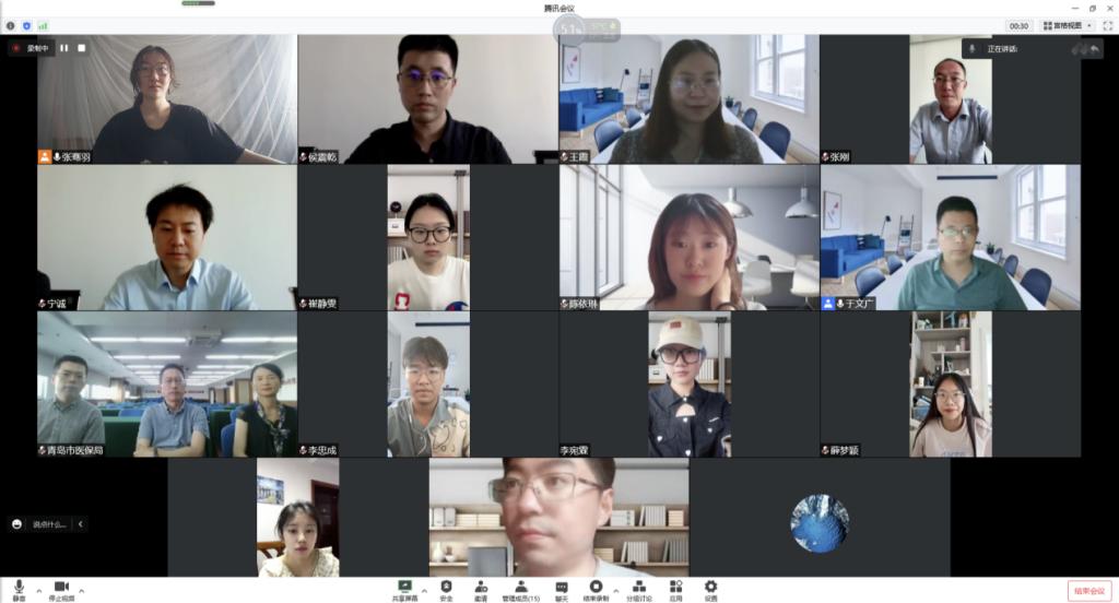 8月2日下午,团队成员与小黄书 院长、党委副书记于文广教授、副院长于新亮教授等老师、青岛市医疗保障局、太平养老保险股份有限公司青岛分公司进行了多方线上会谈。