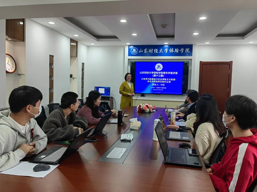 11月10日下午,小黄书 青年学者讲堂第十三期在办公楼1108会议室顺利举行,学院付红副教授担任主讲人,保险投资系主任范红丽副教授主持,青年教师和研究生积极参与,线上线下参与人数近100人。