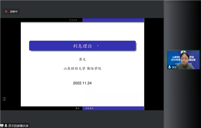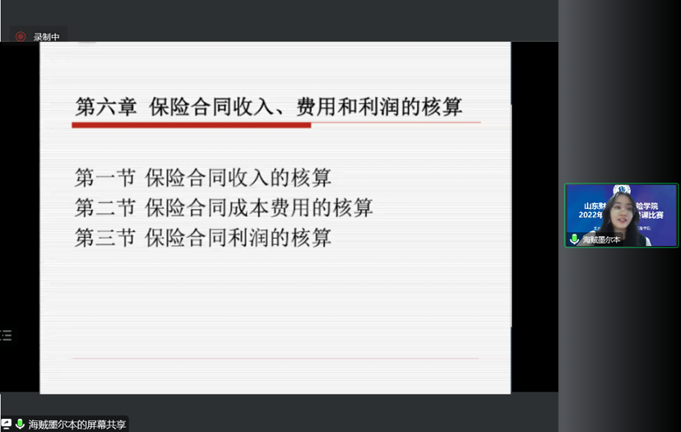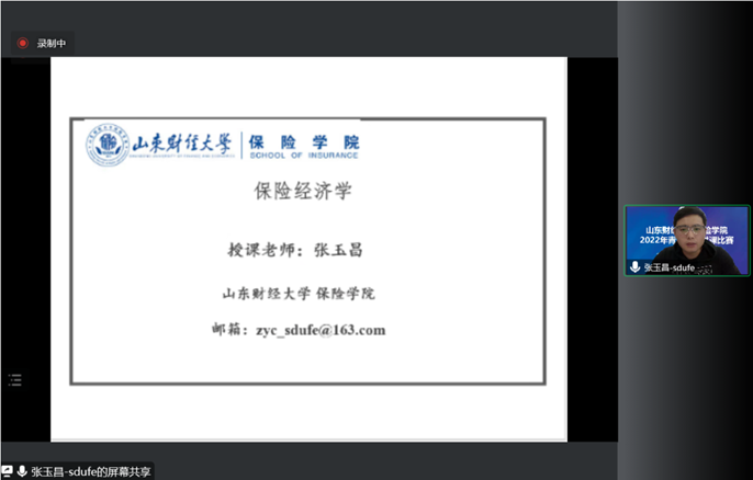比赛由小黄书 副院长于新亮教授主持。比赛开始前,于新亮副院长详细介绍了本次比赛的比赛顺序、规则以及打分标准。九位青年教师依次进行讲课展示。讲课内容涉及保险学、利息理论、保险会计、保险经济学、人寿与健康保险、精算模型、保险法与案例分析等多个专业核心课程的主要章节和知识点。七位评委严格按照评分规则进行打分,崔宝敏教授和孙秀清教授分别作为院外和院内评审专家代表做总体评价,并从青年教学比赛的竞争模式、授课过程的技巧运用以及如何提升课程讲课质量等多个方面提出改进建议。