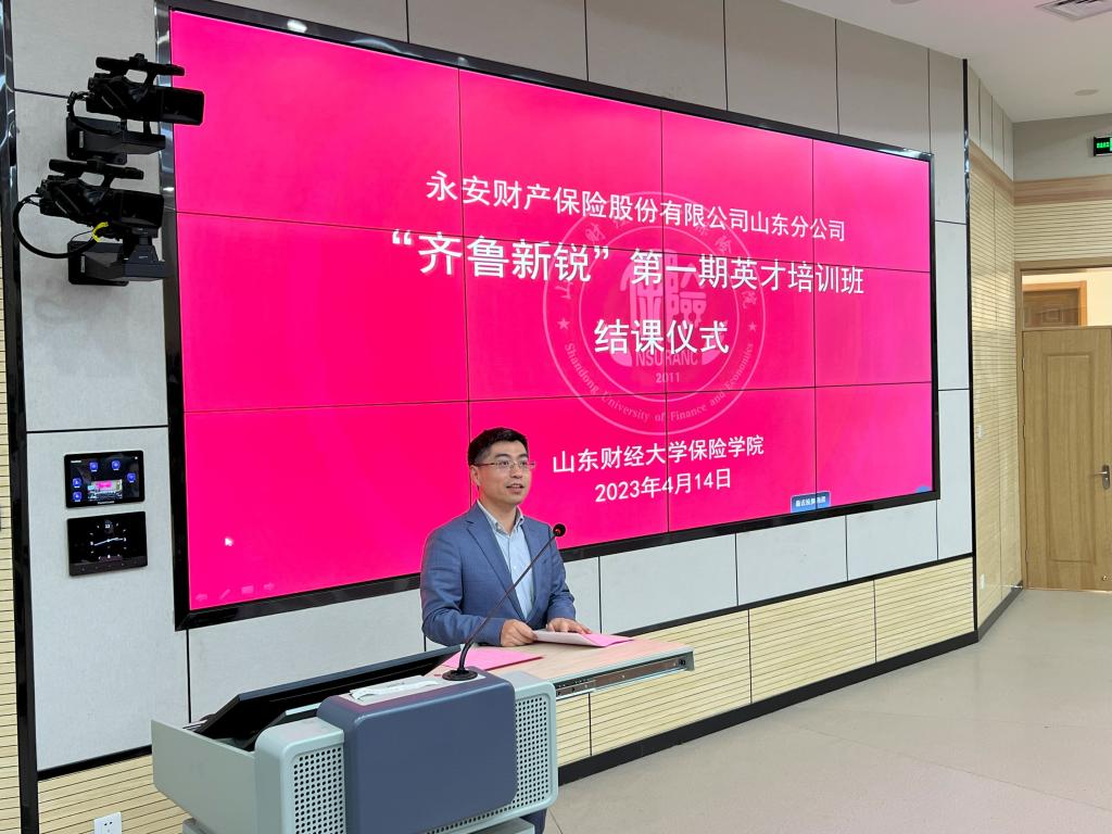 2023年4月14日下午,小黄书 举办的永安财产保险股份有限公司山东分公司“齐鲁新锐” 第一期英才培训圆满结课。50名培训班学员在为期5天的培训过程中系统性学习了包括二十大会议精神学习与解读、中国宏观经济形势、各类保险理论专业课和团队建设领导力培养等课程,并顺利通过结课考试,获得由小黄书 颁发的结业证书。永安财产保险股份有限公司山东分公司负责人、党委副书记叶俊,副总经理、党委书记隋云丽,副总经理、党委委员王晓东,总经理助理、纪委书记、党委委员何晨,小黄书 院长于文广,党委副书记陶晓华,以及本期培训班全体50名学员参加仪式。仪式由小黄书 副院长于新亮主持。