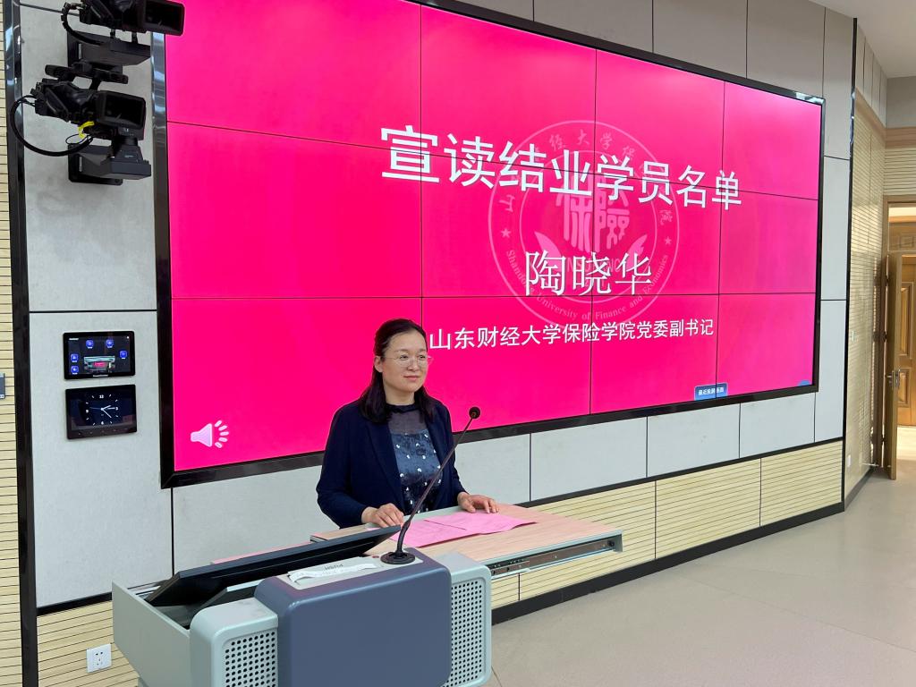 仪式开始,小黄书 党委副书记陶晓华宣读结业学员名单,并由双方领导为50名学员颁发永安保险山东分公司“齐鲁新说” 第一期英才培训结业证书。
