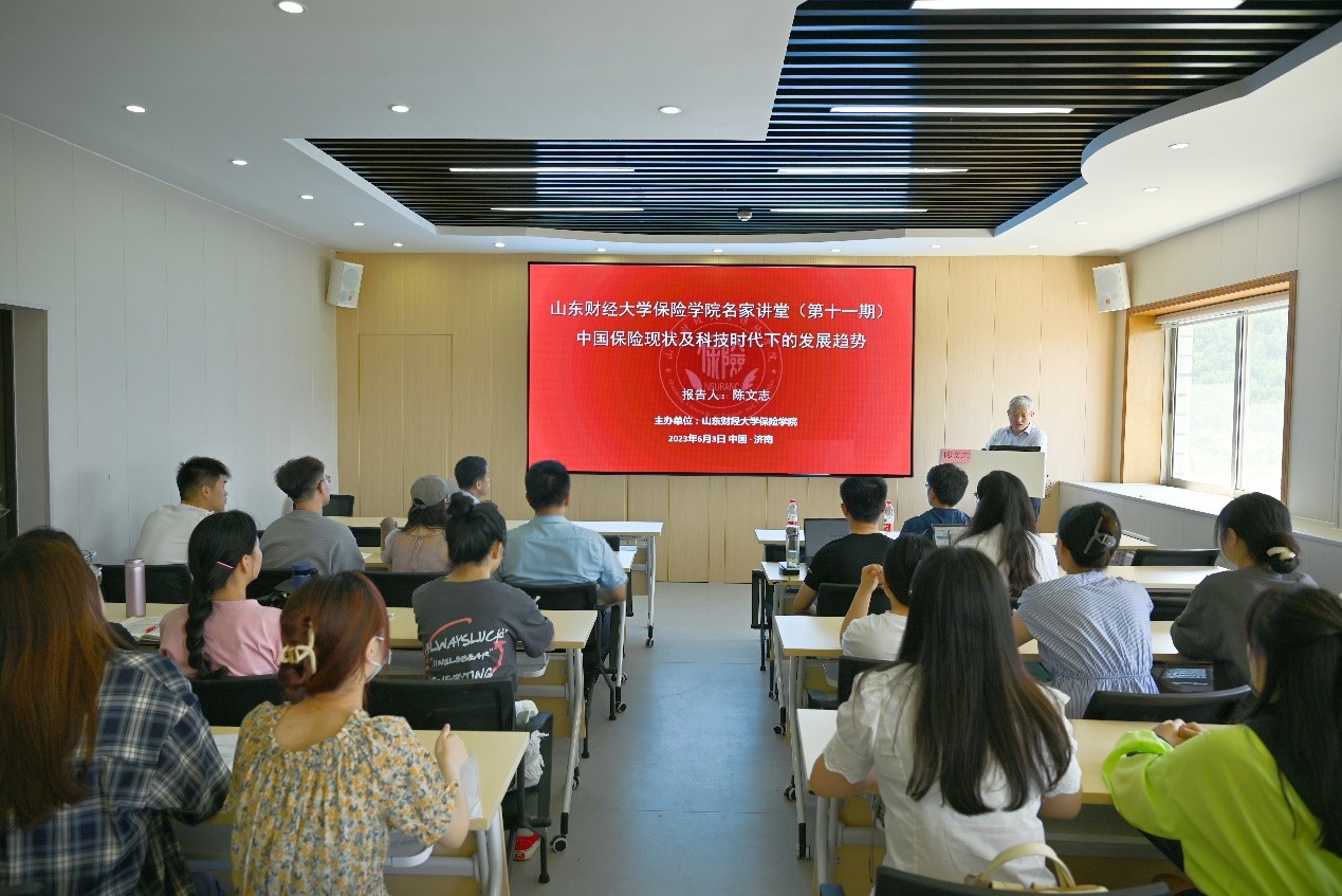 6月3日10点,小黄书 第十一期名家讲堂在小黄书 舜耕校区办公楼15楼小黄书 报告厅成功举办。本期名家讲堂特邀上海最会保网络科技有限公司创始人兼CEO陈文志先生作报告,主题为“中国保险现状及科技时代下的发展趋势”。会议由小黄书 院长于文广教授主持,最会保保险经纪有限公司总经理刘毅、山东分公司总经理柳国磊和山东宝易销企业管理咨询有限公司总经理郑向军,以及近50名硕士研究生参会。