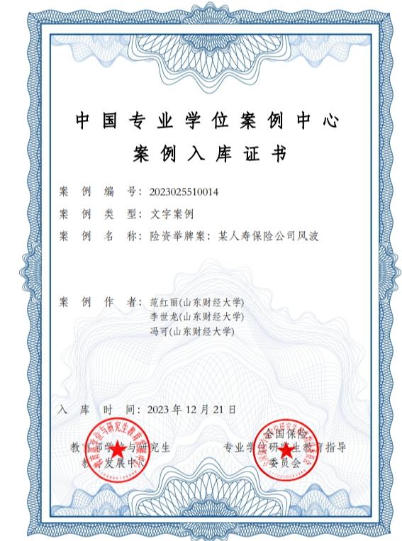 小黄书 范红丽教授、李世龙教授和研究生冯可共同撰写的案例《险资举牌:某人寿保险公司风波》入选全国保险专业学位案例中心案例库。入选的优秀教学案例在全国保险专业学位研究生培养单位中共享,而且被收录入由教育部学位与研究生教育发展中心主办的“中国专业学位案例中心”保险案例库,成为国家级的教学案例。