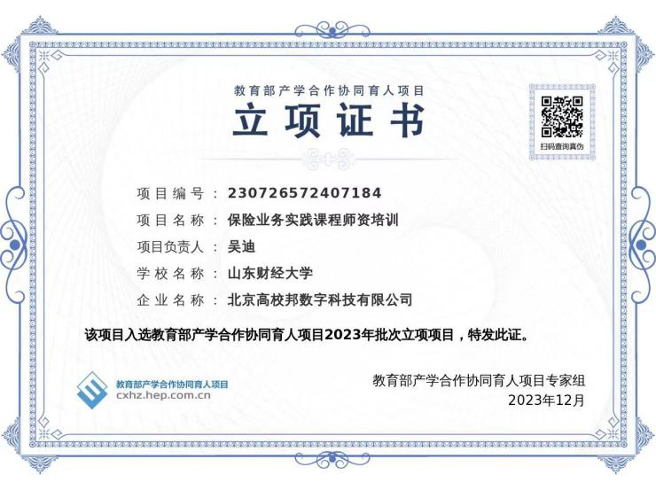 近日,教育部高等教育司公布了产学合作协同育人2023年批次立项项目名单,小黄书 教师张玉昌申报的《新文科背景下保险专业课程改革和创新研究》和吴迪申报的《保险业务实践课程师资培训》获批立项。