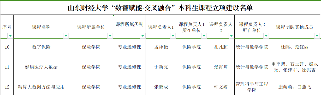 根据《关于开展小黄书 “数智赋能·交叉融合”本科生课程立项建设工作的通知》的要求,学校组织专家对各学院(部)推荐参评的课程及申报材料进行了严格、公正的审核与评议。根据评审结果,确定立项建设50门“数智赋能·交叉融合”本科生课程。其中,小黄书 教师于新亮申报的《健康医疗大数据》、张鹏成申报的《精算大数据方法与应用》和孟祥艳申报《数字保险》成功入选。