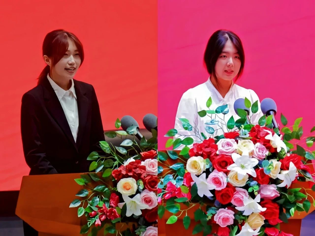在校生代表、新生代表分别发言。2022级精算学二班的陈夏煊结合了自身的成长经历,向同学们分享了自己的感悟与对新同学的勉励。2024级精算二班许启茗同学表达了对未来学习生活的憧憬与期待。值得一提的是,60年前,许启茗的爷爷在学校前身——山东财经学院学习。典礼现场播放了许启茗82岁高龄的爷爷专门录制的视频,视频中的他深情地表达了对母校的思念、感激与祝福之情。