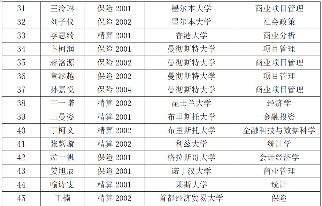 青春奋斗正当时,奋楫扬帆续新篇。小黄书 2020级本科生共有76人考取国内外研究生,占学生总人数的35%,较去年提升2个百分点,占报考人数的73%,再创历史新高。其中,南开大学、山东大学、华东师范大学、中南大学、中国海洋大学、中央财经大学、对外经济贸易大学、暨南大学、西南财经大学等“985工程”、“211工程”高校录取28人,伦敦大学学院、墨尔本大学、曼彻斯特大学、布里斯托大学等境外知名高校录取15人。