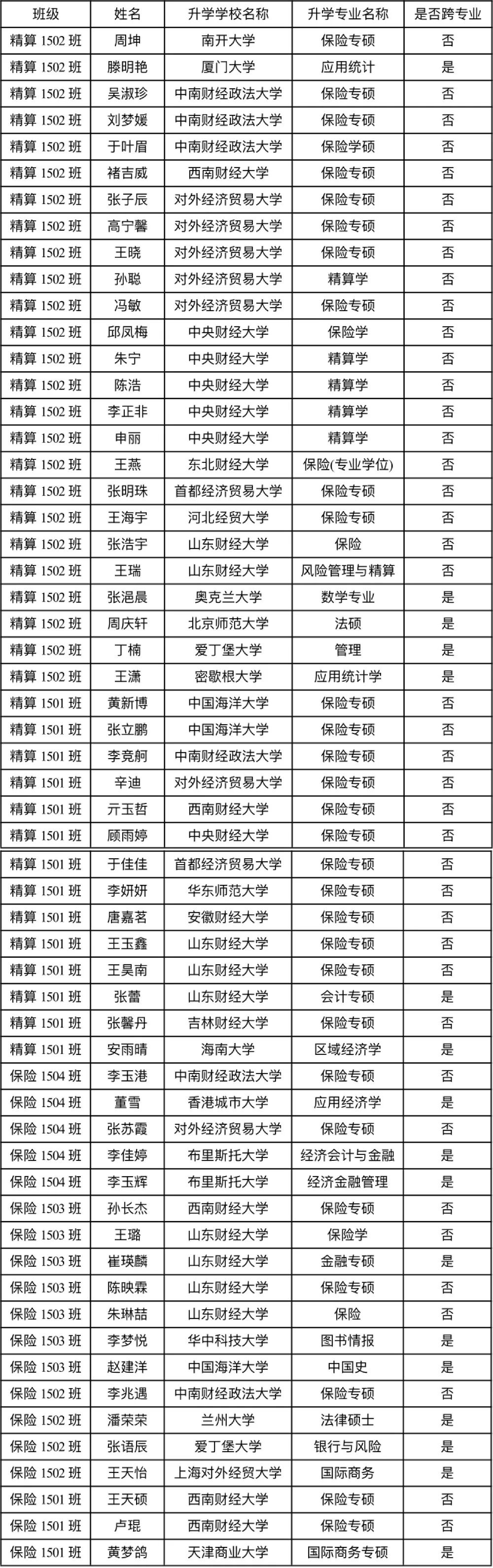 考研升学工作作为促进学院学风,提升育人质量的重要抓手,历来为小黄书 所重视。近年来,学院学生的考研成绩、录取学校层次呈现出年年攀升的喜人态势。据统计,小黄书 2019届本科毕业生中共有57人考取国内外研究生,占2019届本科学生总数的20.6%。其中3名同学成功通过推免升学,9名考入985高校,26名考入211高校,考取国内名校研究生的人数占国内研究生录取人数的70%,录取学校包括南开大学、厦门大学、中南财经政法大学、对外经济贸易大学、西南财经大学、中央财经大学、东北财经大学、兰州大学、北京师范大学、华东师范大学、中国海洋大学等知名高校。从考取的专业来看,40名同学选择保险及金融相关专业继续深造,16名同学成功考取其他专业的研究生。值得一提的是,小黄书 保险学(精算方向)专业考研率实现新突破,考研人数占录取总人数的67.2%,其中2015级保险精算2班考研率为46%,创班级考研率新高,该班朱宁学生考研数学三取得满分的好成绩。