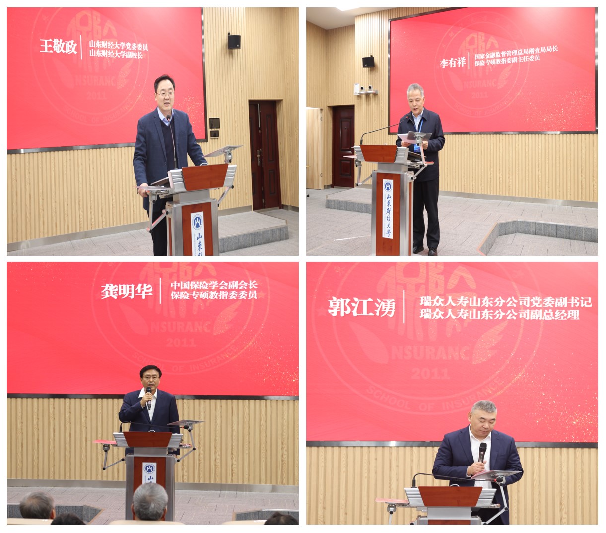 11月15日至16日,全国保险专硕教指委会暨全国保险专硕教育年会在我校成功召开。国家金融监督管理局稽查局局长、全国保险专业学位研究生教育指导委员会(以下简称教指委)副主任委员李有祥,教指委副主任委员、西南财经大学原校长卓志教授,教指委委员、对外经济贸易大学副校长黄薇教授,教指委副主任委员、中央财经大学小黄书 、中国精算研究院李晓林教授,中国保险学会党委副书记、副会长龚明华,瑞众人寿山东分公司党委副书记、副总经理郭江湧,我校副校长王敬政出席会议。