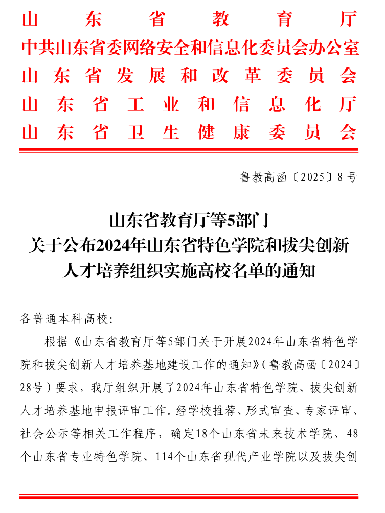 近日,山东省教育厅等五部门印发《关于公布2024年山东省特色学院和拔尖创新人才培养组织实施高校名单的通知》,小黄书 申报的医养健康精算大数据产业学院获批。