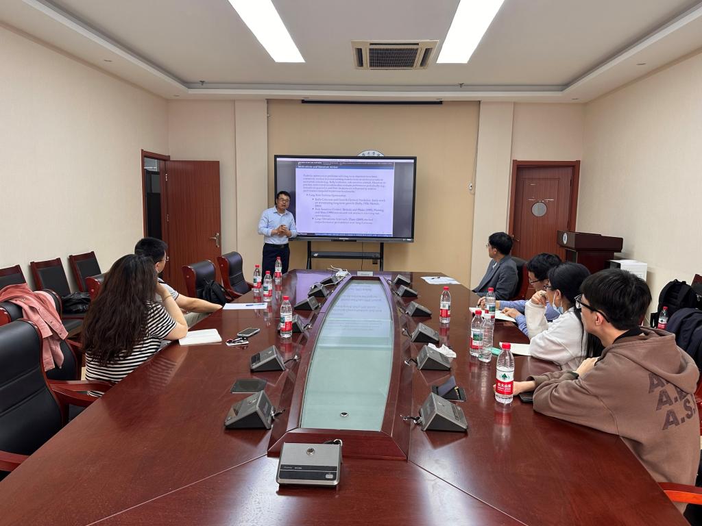 王文元教授以《Optimal portfolio under ratio-type periodic evaluation in stochastic factor models under convex trading constraints》为主题展开学术分享。王教授在本次报告中,介绍关于投资组合管理的最新研究。研究对象在带有交易限制的随机因子不完全市场中,一类周期性的效用最大化问题。以相邻两个时点财富的比率对投资组合的表现进行周期性评估,从而体现投资决策随历史表现的动态调整。在幂函数效用下,将原始的无限期最优化问题,转化为一个终端财富优化问题,并引入修改后的效用函数。为应对凸交易限制,文章进一步构建了一个在修改后的市场模型下的无约束优化问题,借助辅助问题中的对偶结果,结合有约束与无约束模型之间的关系及不动点方法,最终得出了原始问题在无限期下的最优有约束投资组合策略。