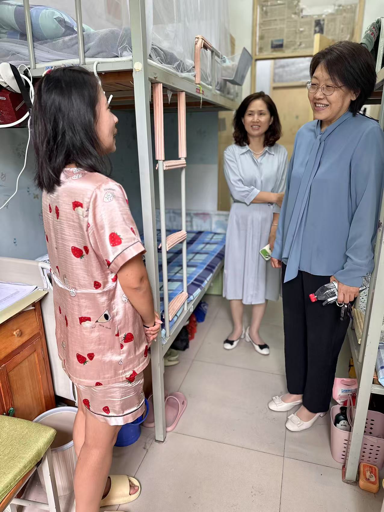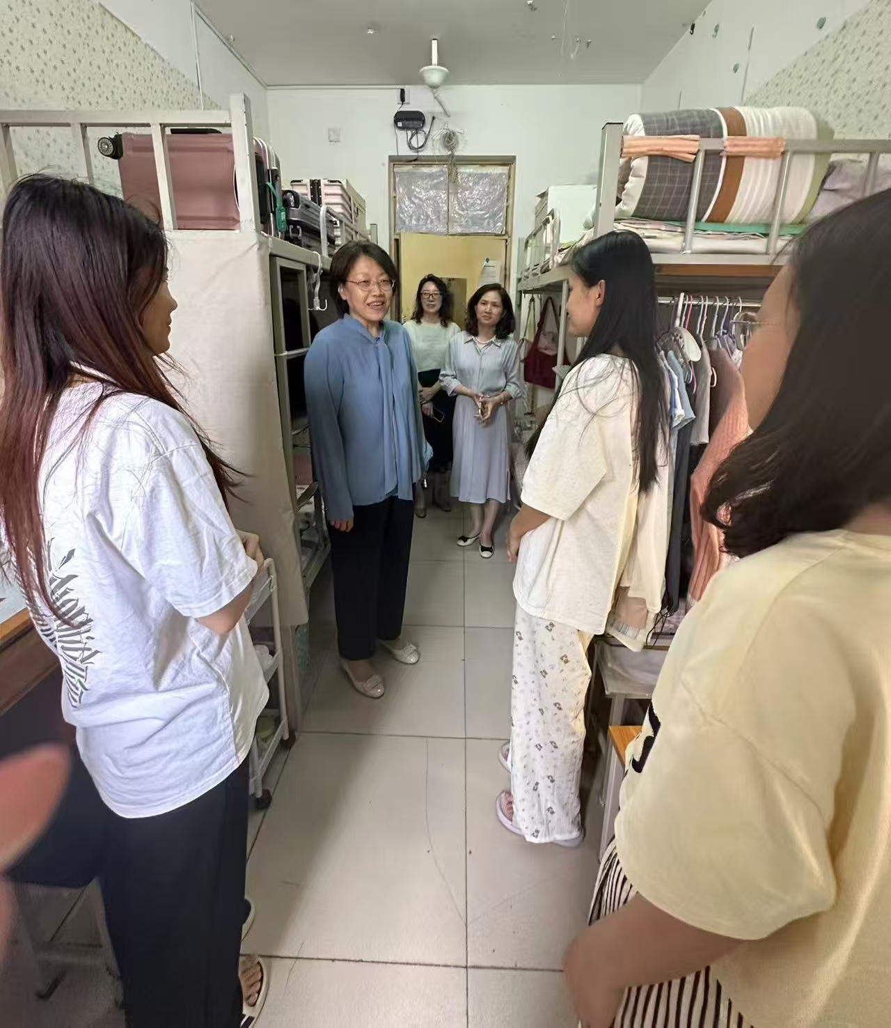 毕业生宿舍走访慰问。她亲切询问同学们的毕业去向与发展规划,送上温暖的祝福与嘱托,勉励大家在新岗位上尽快适应、努力拼搏、积极进取。张红霞深情表示,母校永远是学子的坚强后盾和温暖港湾,欢迎常回家看看。