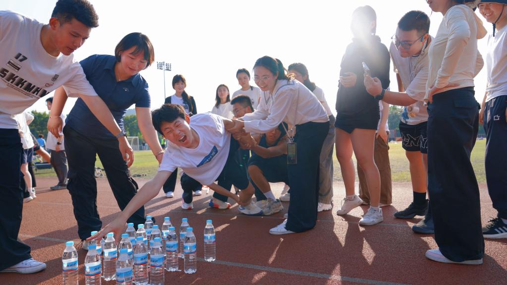 随后,在“群龙取水”项目中,新生们集思广益、分工配合,在一次次尝试中摸索到最优方案。