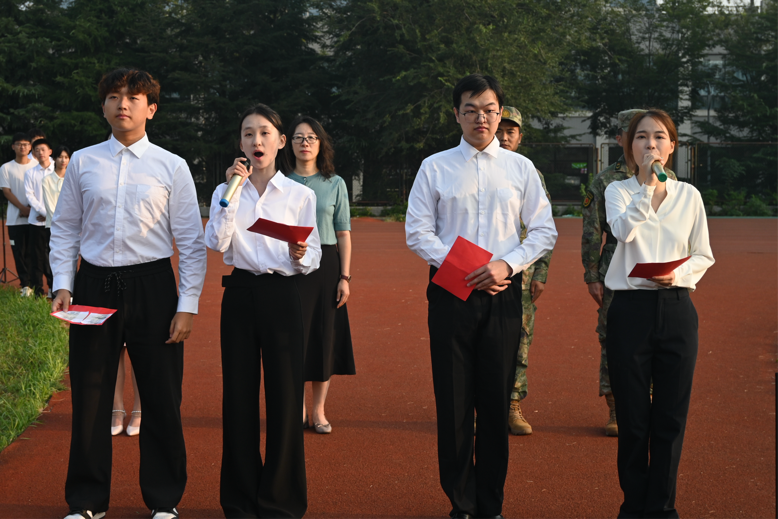 仪式最后,小黄书 2025级全体新生共同诵读《请党放心,强国有我》誓词。激昂嘹亮的诵读声回荡在操场上空,内容从致敬人民英雄、回望党的百年征程,到赞美祖国发展成就、立下青春奋斗誓言,每一句诵读都凝聚着新生们的赤诚之心,成功将仪式氛围推向高潮。