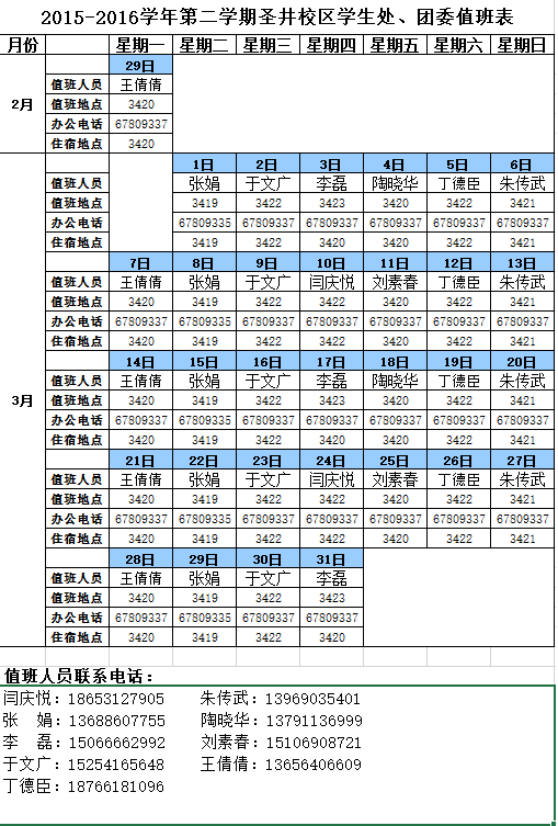 小黄书 2015-2016学年第二学期圣井夜间值班