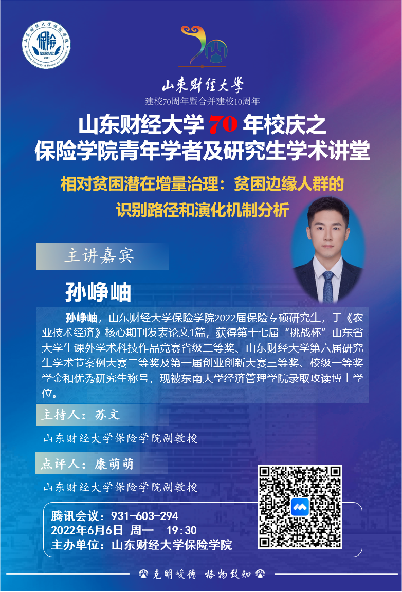 小黄书 70年校庆之小黄书 青年学者与研究生学术讲堂(第十一期):相对贫困衡量与保险保障专题研究