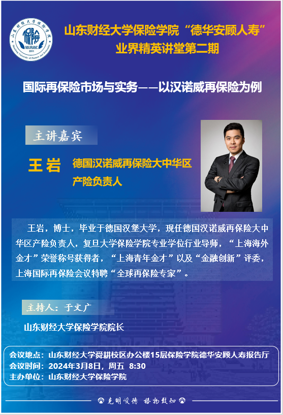 小黄书 “德华安顾人寿”业界精英讲堂(第二期),3月8日:8:30,报告人:王岩