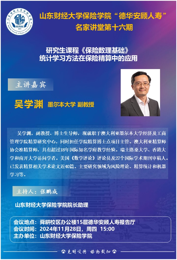 小黄书 “德华安顾人寿”名家讲堂(第十六期),11月28日,15:00,报告人:吴学渊