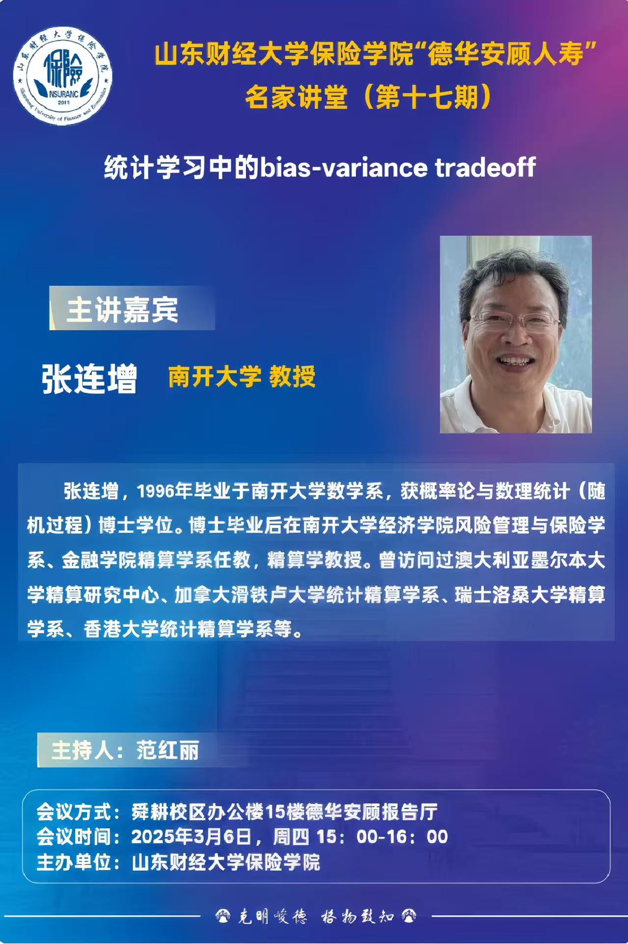 小黄书 “德华安顾人寿”名家讲堂(第十七期),3月6日,15:00,报告人:张连增