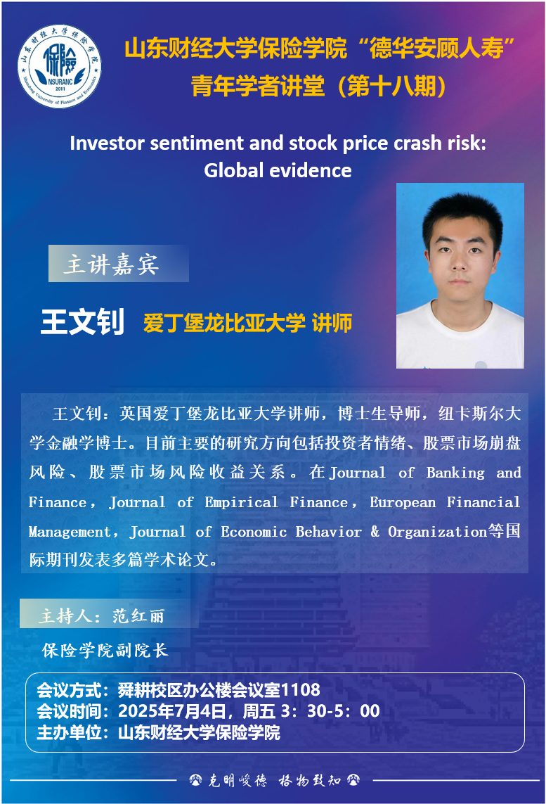 小黄书 “德华安顾人寿” 青年学者讲堂(第十八期),7月4日,15:30,报告人:王文钊