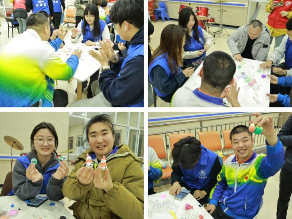 随后,志愿者们还带领残疾人朋友进行了手工制作。在手工制作环节,大家互相配合,共同完成了精美的手工作品,现场充满了欢声笑语。志愿者们与残疾人朋友一起动手,制作了各种富有创意的手工艺品,如纸花、串珠饰品等。这些作品不仅展现了残疾人朋友的动手能力,也体现了他们的创造力和团队合作精神。志愿者们纷纷表示,通过手工制作,他们与残疾人朋友之间的距离更近了,彼此之间的理解和信任也得到了加深。